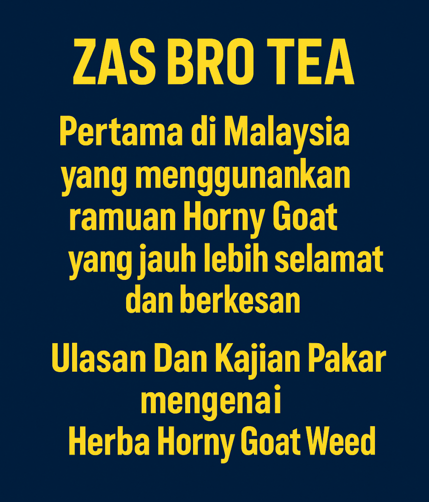 ZAS BRO ialah teh herba premium setaraf kualiti formulasi kesihatan, diekstrak daripada Horny Goat Weed -yin yang huo (淫羊藿), Black Tea, Meca, Orange Korea.
